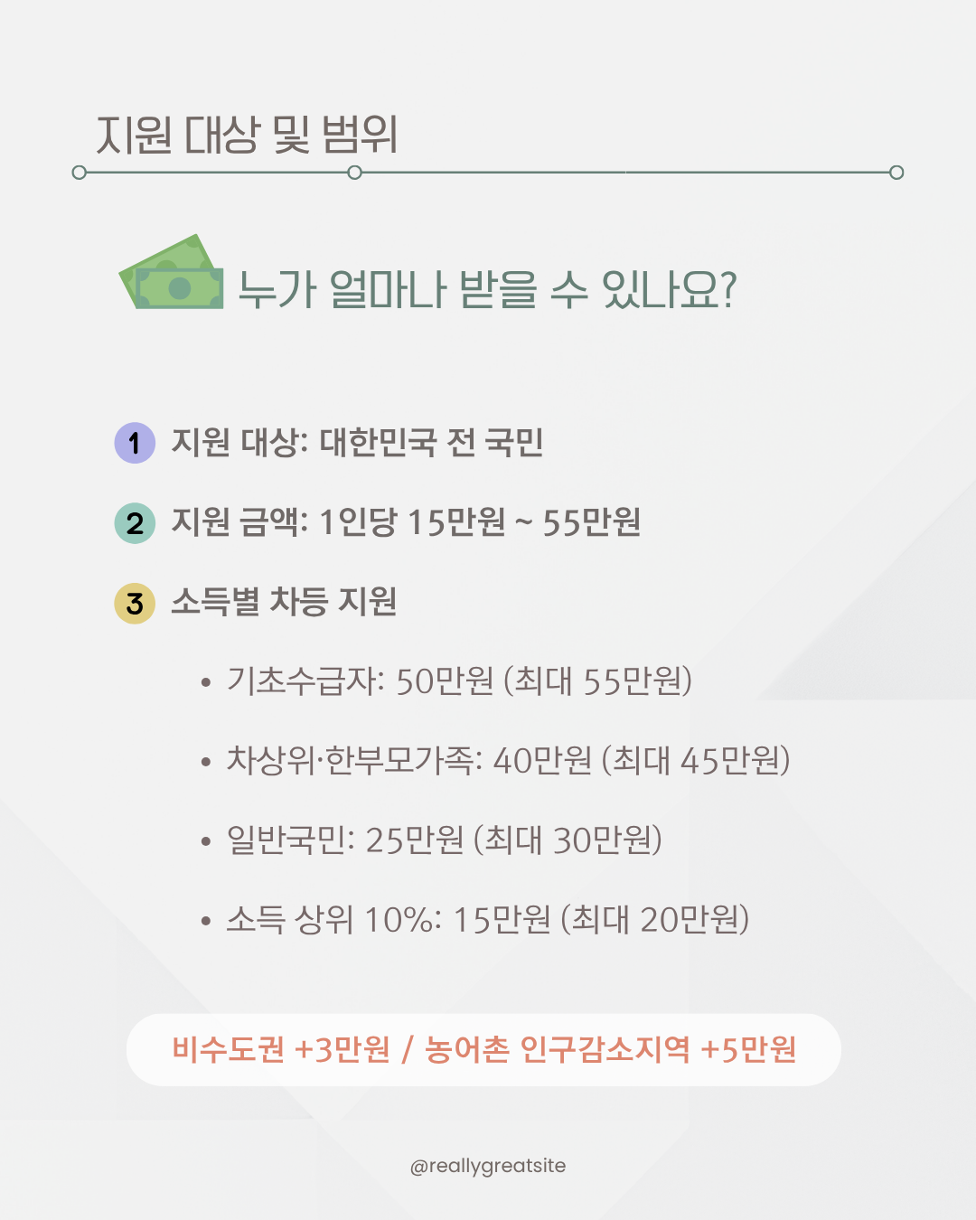지원 금액은 1인당 최대 52만 원으로, 2회에 걸쳐 분할 지급됩니다. 1차 지급은 신속하게 이루어지고, 2차 지급은 소득과 가구 상황에 따라 차등 지급될 예정입니다. 일부 지역에서는 특정 계층을 대상으로 추가 지급이 있을 수 있습니다.